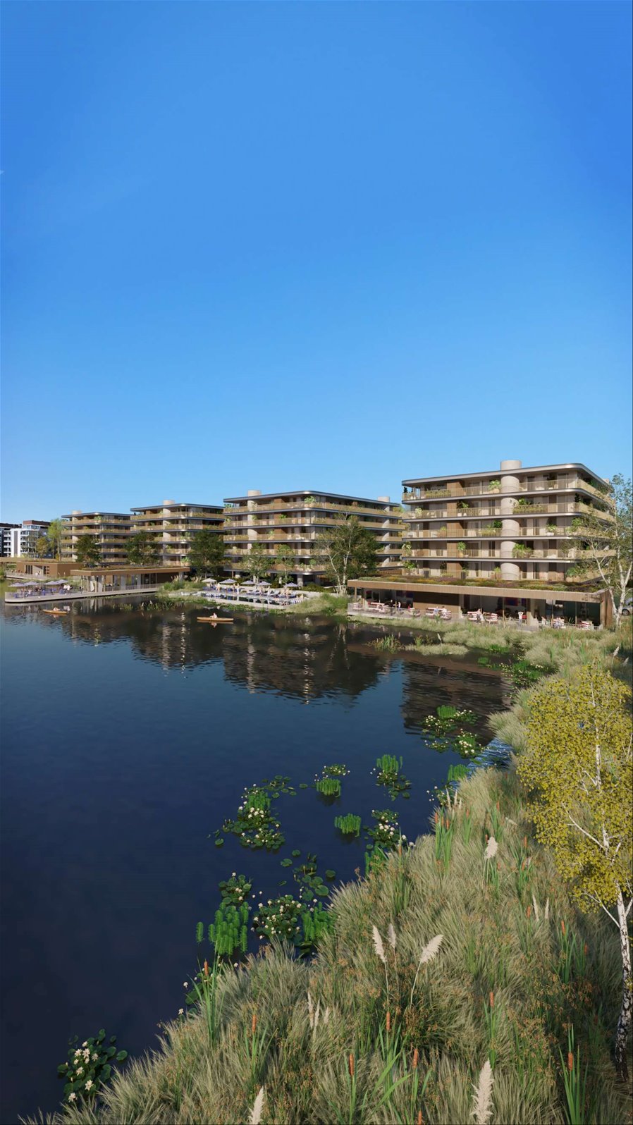 Entre sus amenities se destacan un café dentro del complejo, gimnasio, pet spa, guardería náutica, spa con wellness point, piscina, solárium, salón de usos múltiples con parrilleros, playroom, laundry con tender, bike parking, plaza de juegos, pocket parks, áreas de recreació