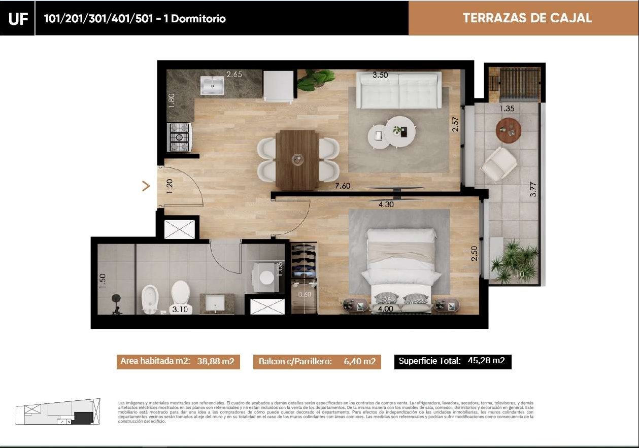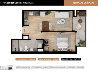 Apartamento en alquiler en el edificio Terrazas de Cajal, ubicado en la zona de La Blanqueada en Montevideo, Uruguay. Esta propiedad, con una superficie de 45 metros cuadrados, se encuentra en estado de construcción y ofrece un dormitorio y un baño. Su orientación al este y disposición al frente garantizan una buena iluminación natural. El apartamento cuenta con cocina integrada, lavadero y patio.Dentro de las comodidades del edificio Terrazas de Cajal, los residentes podrán disfrutar de vigilancia las 24 horas, barbacoa y cochera (opcional) para un vehículo. El edificio se encuentra en una zona estratégica de Montevideo, próxima a puntos de interés como el Estadio Centenario y el Shopping Tres Cruces, ofreciendo fácil acceso a servicios, entretenimiento y transporte público. Esta es una excelente oportunidad para alquilar una vivienda nueva en una zona de rápido desarrollo.