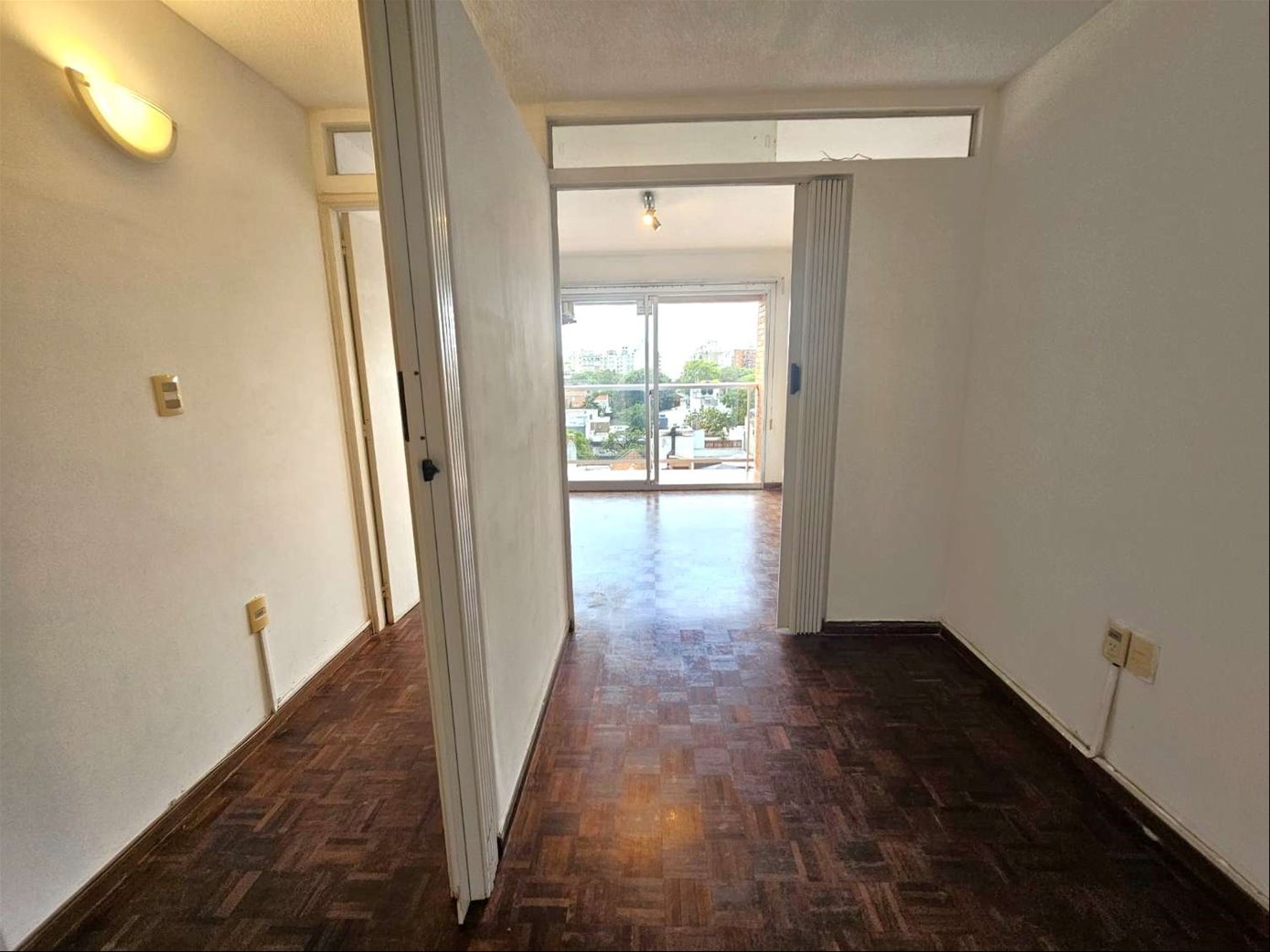 Monoambiente amplio contrafrente con excelente vista despejada . , pisos de parquet, cocina kichenette, baño , y salida a balcón amplio y con divisiones .