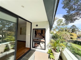 En una de las calle mas lindas de Carrasco Sur- Exclusivo apartamento en alquiler con espectacular terraza con parrillero.Gran living con estufa de leña, cocina independiente y mucha luz natural. Toilette.2 Dormitorios en suite.Gran calidad constructiva con excelentes ventanales.Opcion alquilar con muebles.Seguridad 24 hsGaraje para 2 autos.