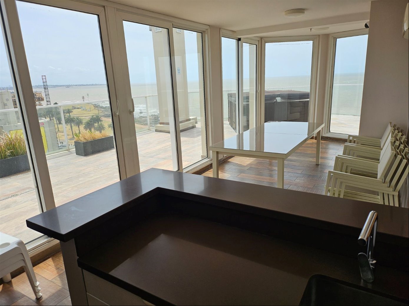 Excelente apto. sobre la Rambla de Punta Carretas entre las calles Vázquez Ledesma y Terú. Próximo al parque de Villa Biarritz y al Punta Carretas Shopping.Vista súper despejada.Única planta...para exigentes. 100 m2 más balcón al frente de 6 m2Muy cómoda distribución con living comedor, terraza al frente, cocina integrada con horno y microondas empotrados, anafe, campana de extracción, lavavajillas, lavadora y secadora. 2 dormitorios (principal con vestidor, secundario con placares), 3 baños (social y dos suites, uno con jacuzzi) y garaje con lugar fijo para 2 autos (adelante y atrás) con acceso independiente directo de la calle.Pisos flotantes y de cerámica. Calefacción individual por sistema Eurocable y equipo de aire acondicionado instalado en el living comedor. Cortinas de enrollar eléctricas por control remoto. Edificio con servicio de vigilancia las 24 hs, barbacoa, solarium, gimnasio y jacuzzi de uso común.Alquiler: U$S 2.300Gastos comunes: $ 18.000Consulte !!!