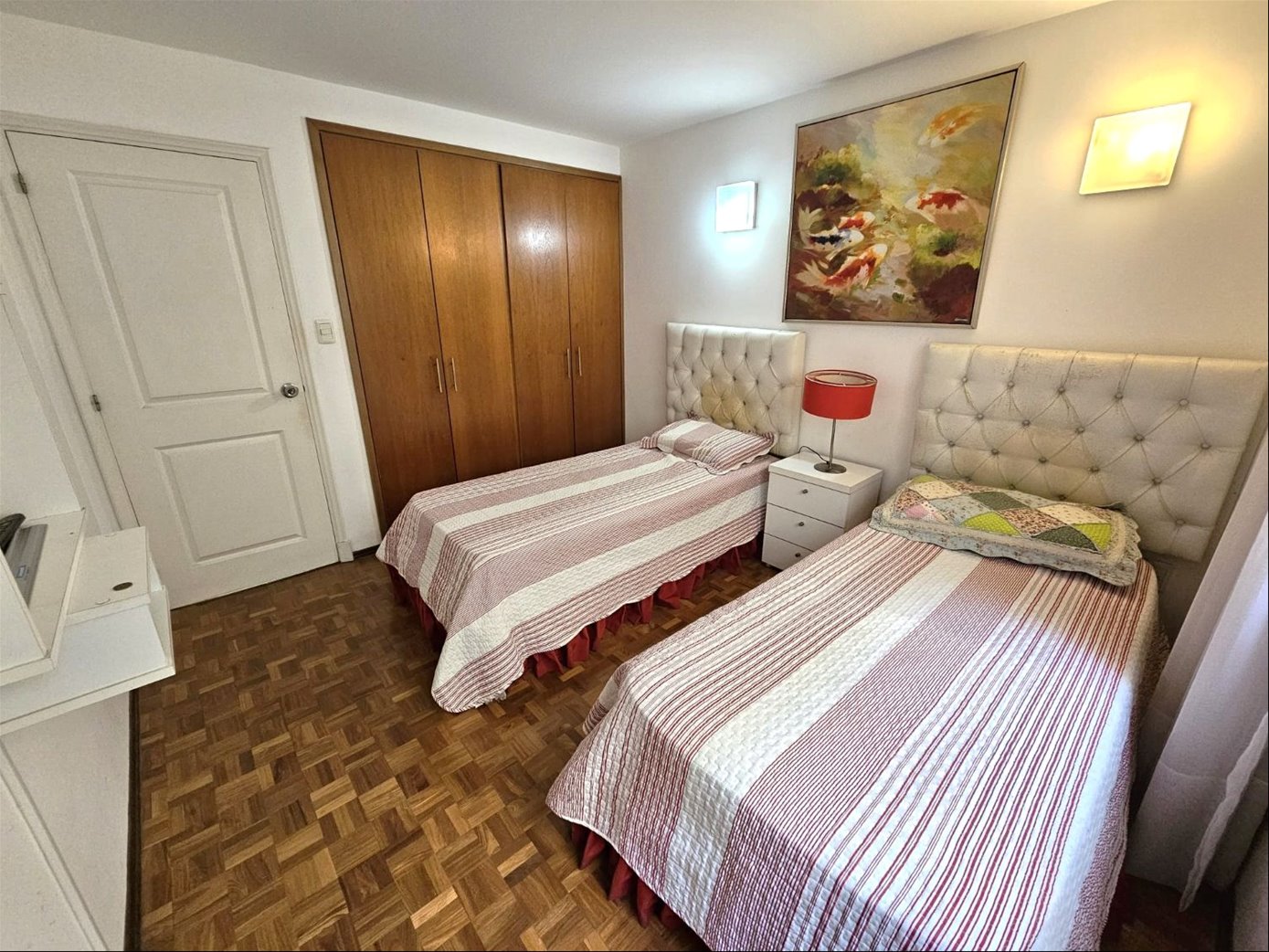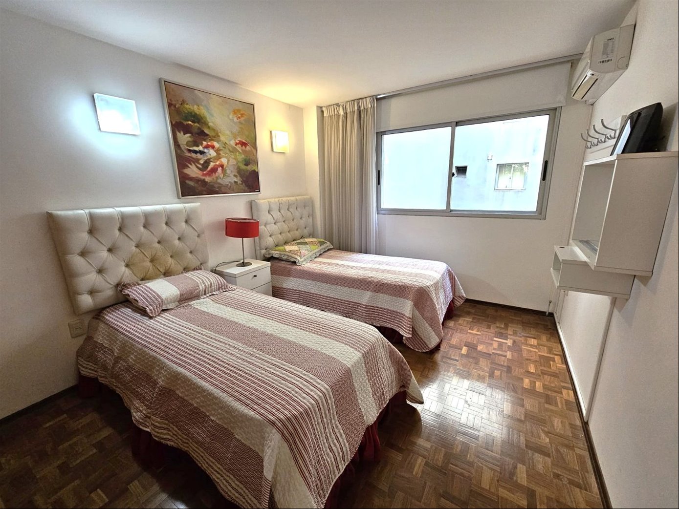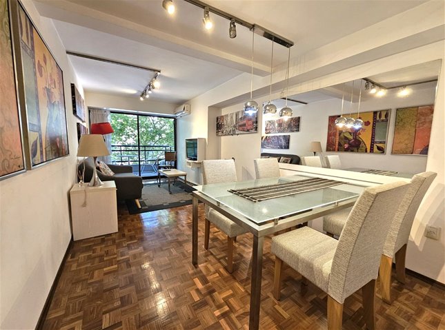 Hermoso apartamento completamente amoblado de 2 dormitorios, 1 baño completo, 1 baño social, cómodo living comedor con terraza. Cocina definida, terraza lavadero. Piso intermedio con muy buena vista y luminosidad. Aire acondicionado en todos los ambientes. 1 lugar de Garage Excelente ubicación en pleno Pocitos sobre Av. Brasil, con todos los comercios y servicios a mano.Gastos comunes $ 9.000 todo el año con vigilancia presencial con horario. 2 ascensores. Amenities del edificio: gimnasio y jacuzzi.