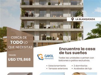 VENTA EN BARRIO LA BLANQUEADA, ¡OPORTUNIDAD DE INVERSIÓN! Apartamento de 2 dormitorios, en Onceavo Piso, con Terraza, INCREÍBLE VISTA.BENEFICIOS FISCALES:El proyecto se realiza al amparo de la Ley 18.795, Ley de Vivienda Promovida (Vivienda Social) por lo que cuenta con:- Exoneración de IVA en el Precio de Compra.- Exoneración de IRPF/IRAE durante 10 años.- Exoneración de Impuesto al Patrimonio durante 10 años.- Exoneración de ITP aplicable en la 1º compra.SERVICIOS Y CARACTERÍSTICAS:• En el nivel de azotea, un parrillero cerrado común, equipado con mobiliario y una amplia terraza al Oeste con vistas despejadas.• Lavadero / Servicio.• Portero eléctrico con cámara visor color.• Previsión carga eléctrica para vehículos en estacionamiento.• Iluminación LED en espacios comunes.• Sensores de movimiento en palieres.• Ascensores de última generación.EQUIPAMIENTO:• Las unidades cuentan con terrazas o patios exclusivos, con barandas metálicas de hierros verticales y divisorios de cristal entre terrazas.• Espacios de living y dormitorios con previsión eléctrica y sanitaria para equipos de Aire Acondicionado, pavimento vinílico y • Grandes aberturas de aluminio, protegidas con cortinas de enrollar en todos los ambientes. • Los dormitorios cuentan con armarios completos.• Cocinas integradas con muebles completos bajo mesada y aéreos en MDF melamínico. • Mesadas de granito y pileta en acero inoxidable. • Mueble para lavarropas y calefón independiente. • Amplios baños accesibles, con mueble bajo pileta, aparatos sanitarios, griferías accesorios de excelente calidad.GARAJES DESDE: U$D 20,000- Gastos de ocupación 4 %.- Honorarios inmobiliarios del 3% + IVA.+ Info: 092500292 / 099699843Solicite una reunión para conocer el proyecto que ya estrenó, ubicado en un punto residencial de Montevideo. ProyectoVENTA BARRIO LA BLANQUEADA: Edificio Site Centenario Site Centenario está en una ubicación muy práctica y accesible, ideal para quienes buscan vivir cerca de todo: transporte público, comercios, salud y educación. Es un área residencial en desarrollo, a metros de Av. 8 de Octubre. El edificio consta de 12 pisos con excelente iluminación, unidades de 1 y 2 dormitorios, 24 cocheras distribuidas en subsuelo y planta baja, y construcción tradicional con terminaciones de calidad.Todas las unidades cuentan con terrazas o patios exclusivos, buena orientación (Este-Oeste), y terrazas con vistas abiertas.BENEFICIOS FISCALES:• Exento de IVA en compra.• Exoneración de IRPF/IRAE e Impuesto al Patrimonio por 10 años.• Exoneración de ITP aplicable en la 1º compra.Servicios• Terraza con parrillero común en la azotea.• Lavadero común.• Bicicleteros y espacios de estacionamiento.• Portero eléctrico con cámara visor color.FinanciaciónBancoVIS Vivienda de Interes SocialEntrega Julio/2025