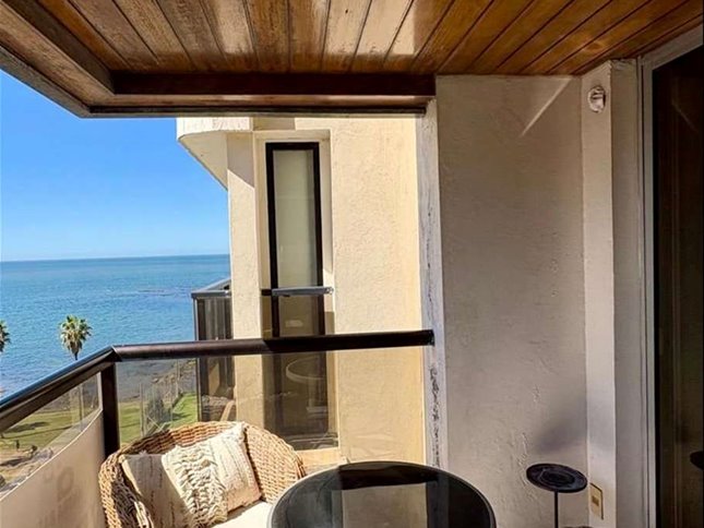 Living comedor con salida a terraza y vista al mar. Cocina definida al frente con muy buenos placares. Dos dormitorios con placares (uno en suite). Otro baño completo. Vigilancia 24 horas y losa radiante central. Gastos comunes $ 16.500