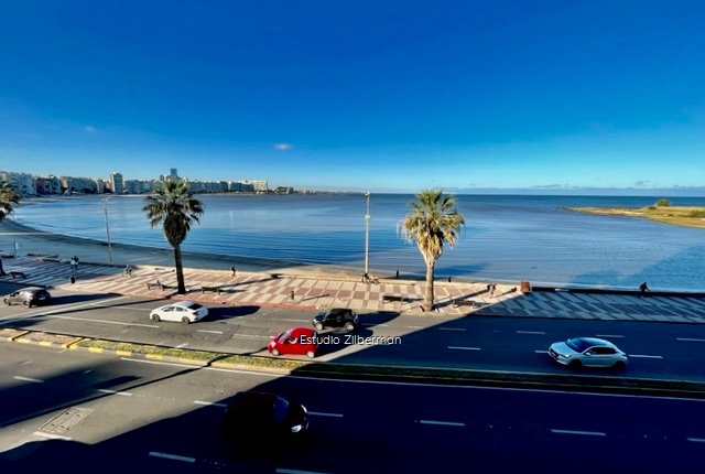 VENTA CON RENTA APARTAMENTO RAMBLA 2 DORMITORIOS Y SERVICIO-Sobre Rambla de pocitos, espectacular vista panorámica.-Living comedor con vista al mar.-Dos dormitorios (principal con vista al mar).-Un baño principal.-Dormitorio de servicio completo (baño de servicio).-Losa radiante central y agua caliente central.-Cocina definida con terraza lavadero.-Reciclado.-Gastos comunes: $ 16.000. (con losa y vigilancia 24hs).-Metraje total: 82 m2 (72 m2 edificados y 10 m2 lavadero).-Se vende con renta.-NO tiene garaje.