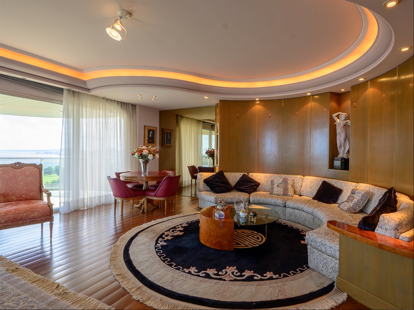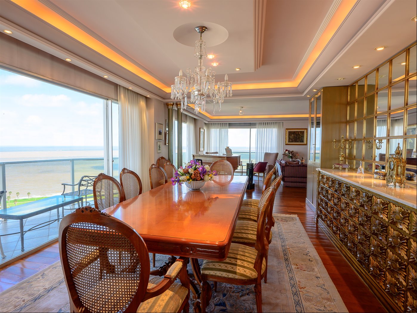 Espectacular apartamento con la mejor vista panorámica al Club de Golf y a la costa.Vista del este al oeste, de la salida a la puesta del sol.Hall de recepción con despojadorGran living comedor con salida a terraza con una vista única.Estar diario con estufa a leñaBarbacoa cerrada con parrillero propio.Baño socialTres dormitorios, dos de ellos en suite.Baño de gran tamaño para el tercer dormitorio.Entre los dormitorios, el hall de distribución es muy ancho.Pisos de lapacho tarugado en todo el apartamento.Cocina amplia con mucho lugar de guardado, doble pileta, campana, horno y anafe.Terraza lavadero y servicio completo.Calefacción por losa radiante central.Tres espacios de garaje, uno de ellos simple y otro doble ( uno delante y otro atrás)Seguridad 24 horas presencialEl edificio cuenta con 2 barbacoas, gimnasio, piscina y cancha de paddle.Gastos comunes $ 65.000 en invierno, y $ 50.000 en veranoContribución 3 x 95.000Primaria 3 x 15.000En resumen una planta para exquisitos, muy amplia y cómoda, fina, con una vista espectacular frente al club de Golf y cercana al mar.
