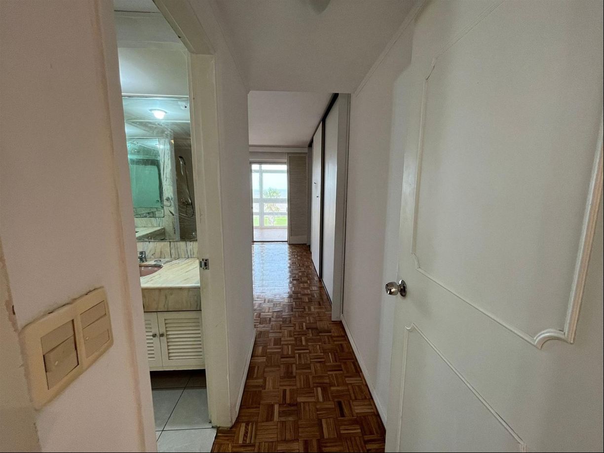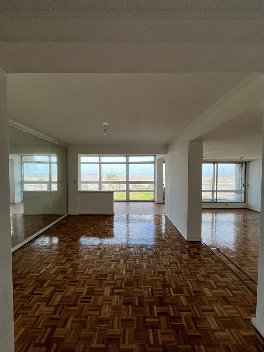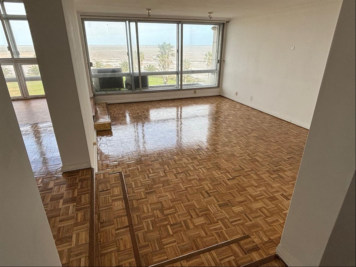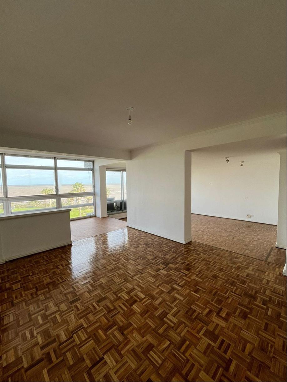 Excelente planta en la Rambla de Punta Carreras y a pasos del Punta Carretas Shopping. Hall de entrada. Gran living y comedor separados, ambos orientados al frente y con salida a terraza cerrada de 17 metros cuadrados. Amplia cocina hecha a nuevo con buen espacio para comedor diario. Tres cómodos dormitorios con placares (uno en suite), dos baños completos (uno reformado hace 10 años y el de la suite de época). Terraza lavadero y servicio completo (el baño hecho a nuevo). Muy linda vista verde y despejada desde los 2 dormitorios que dan al contrafrente al igual que la cocina. 2 garajes (uno atrás del otro). Losa radiante central. 156 metros edificados (139 m2 más 17 m2 de terraza cerrada). Año de construcción 1981. Contribución: 3 cuotas de $ 42.000. Gastos comunes $ 42.900 todo el año. Vigilancia 24 horas. Uno por piso.