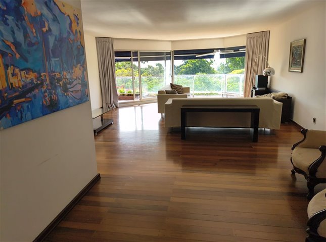 Apartamento en Venta en la exclusiva zona de Golf. Esta propiedad de muy buen estado ofrece 183 metros cuadrados edificados con 21m de terrazas propias. Ubicado sobre Br. Artigas a dos cuadras de la rambla en un piso 5 al frente, con orientación Oeste lo que permite una excelente asolación, el mismo cuenta con:* Muy amplio Living al frente con salida a balcón y división para oficina* Dormitorio principal al frente con salida al balcón, 3 placares empotrados, estilo walk in closet y baño en suite completo con jacuzzi y cabina de ducha estilo clásico en mármol con muy buen gusto.* Dos dormitorios segundarios, al contra frente con vista amplia, los dos con placar empotrado y baño completo en suite* Toilete o medio baño de visitas* Cómodo comedor diario* Cocina muy amplia con profusión de placares en madera, barra desayunadora, acceso de servicio y electrodomésticos empotrados. * Barbacoa cerrada con parrillero propio y conexión de lavarropas* Dormitorio de servicio de muy buenas dimensiones con baño completo en suite y placad empotrado. * Garaje cerrado dobleEl posee a demás portería 24hs los 365 días del año, piscina exterior, gimnasio y cancha de tenis.