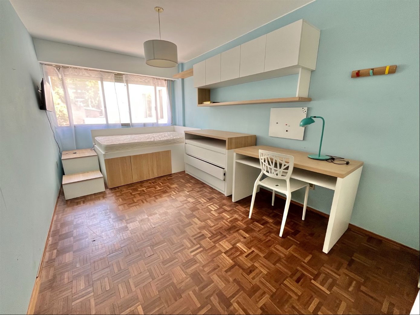 1 dormitorio al frente en suite. 2 dormitorios al contrafrente espaciosos e iluminados. Todos con placard empotrado. Baño completo.