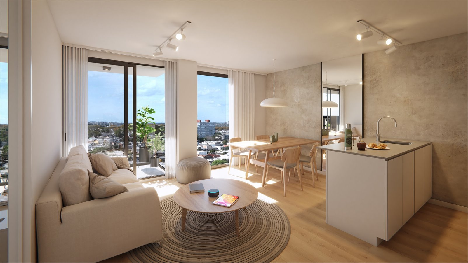 Un hogar con mirada hacia la tecnología y la naturaleza. Apartamentos monoambientes, uno y dos dormitorios, equipados con domótica para controlar el hogar desde el teléfono móvil y permitir la integración de tecnologías para mejorar la calidad de vida, la eficiencia energética y la seguridad. Aspectos tecnológicos que encuentran su equilibrio en paisajes verdes y vegetación en más de la mitad del área libre de planta baja, en las azoteas del basamento y en el coronamiento del edificio además de las impresionantes vistas a la ciudad y al río.- Ascensor- Garaje- Seguridad- Jardin- SUM- Playroom- Parrillero- Cámaras de Seguridad